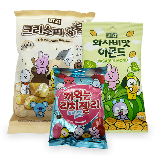 Egal ob BT21 Almonds, knusprige Crispy Grain Sticks oder gefüllte Peeling Jelly Fruchtgummis - Diese herzhaften und süßen Snacks sind ein Muss für alle ARMYs.