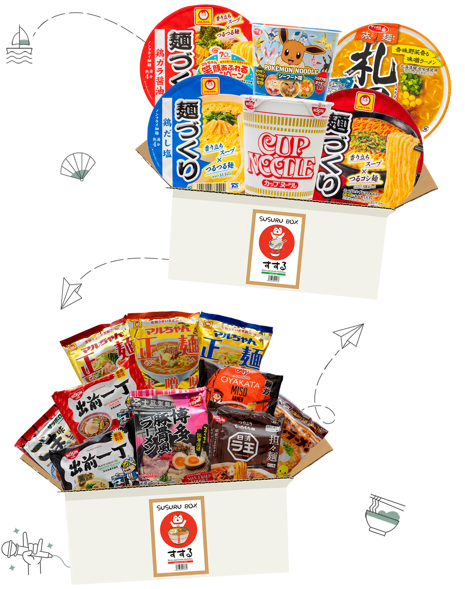 Our Susuru noodle boxes offer you a very special taste experience with delicious instant noodles in a cup or bag and take you into the exciting culinary world of Japan!