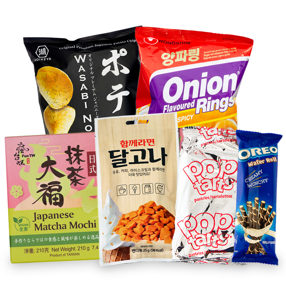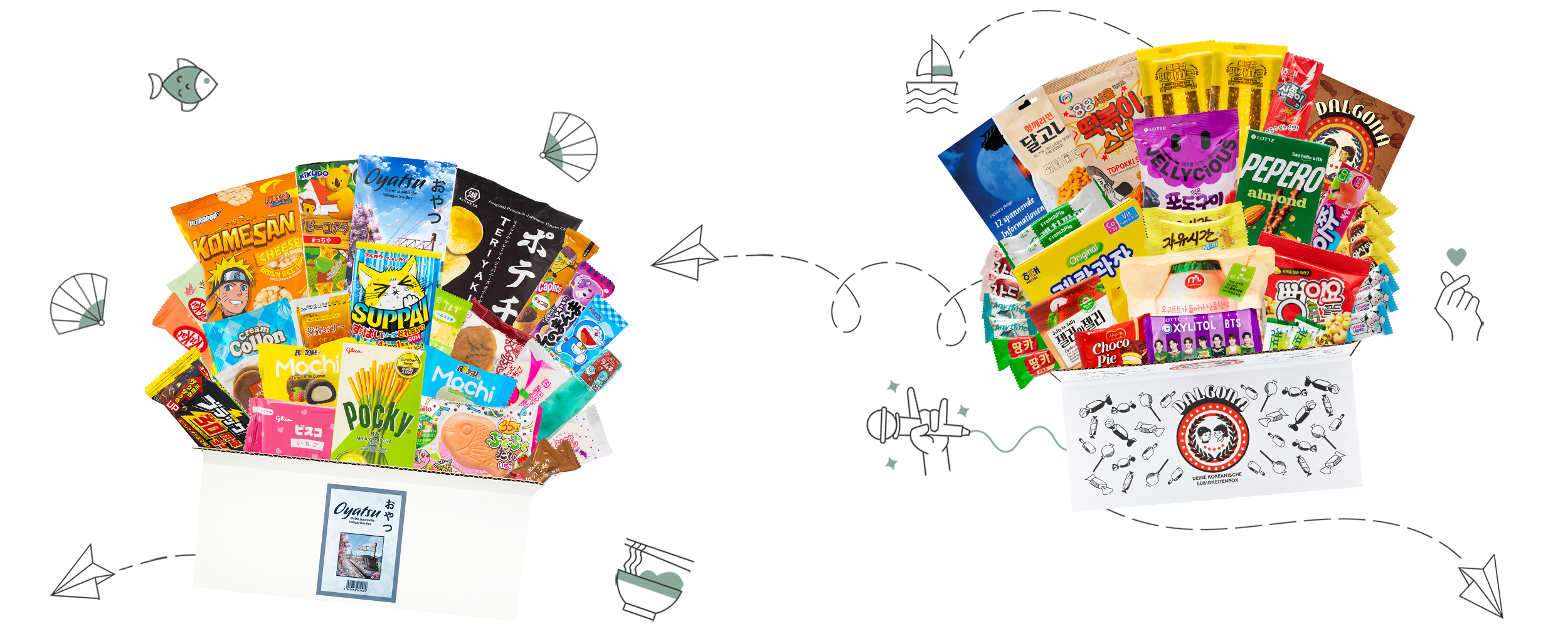 In total, you can look forward to over 70 international sweets, over 50 Asian instant noodles and ingredients for 8 delicious boba teas ! The contents of the surprise boxes are randomly selected.