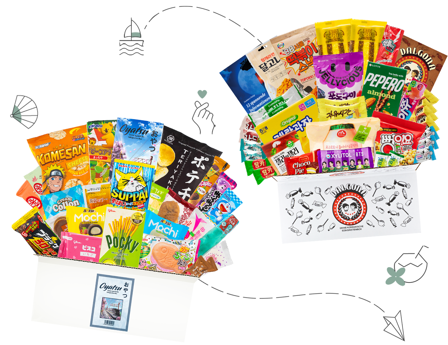 You can try a variety of sweets and snacks: The Dalgona Box contains over 30 sweets from Korea , the Oyatsu Box offers you over 20 delicacies from Japan and with the over 20 American snacks in the Candy Roads Box you can go on a culinary road trip through the United States.