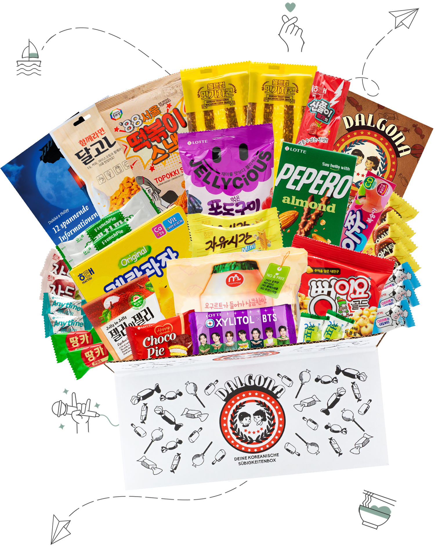 In unserer Dalgona-Box, der Überraschungsbox mit mindestens 30 koreanischen Süßigkeiten, findest du ausgewählte Snacks, die dich direkt in die belebten Straßen Seouls transportieren werden!